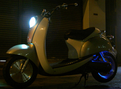 На скутер Suzuki Address V 110 2004 было установлено около 80 светодиодов. Модернизации подверглась передняя и задняя оптика, днице скутера и боковые